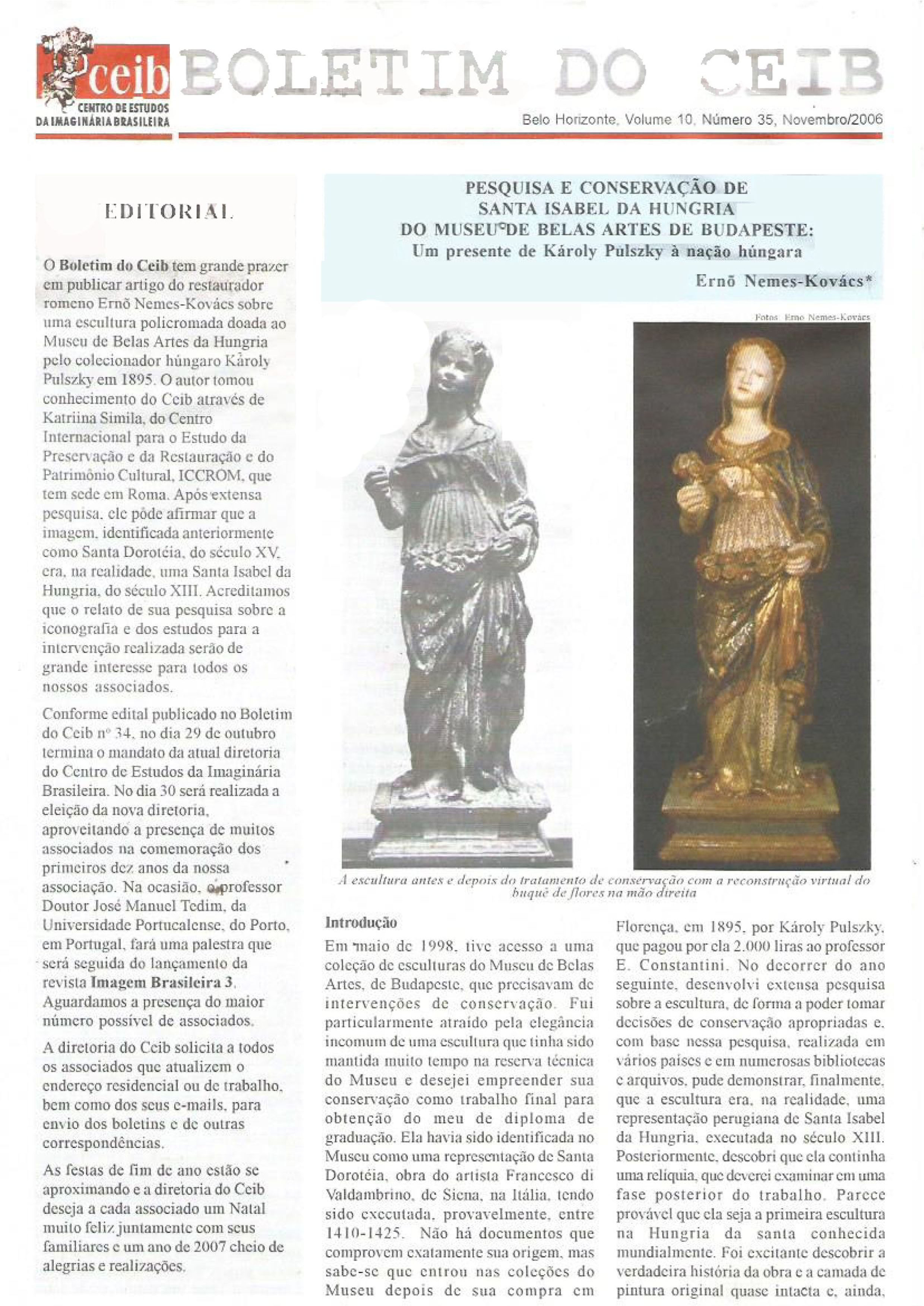 - PESQUISA E CONSERVAÇÃO DE SANTA IZABEL DE HUNGRIA DO MUSEU DE BELAS ARTES  BUDAPESTE: UM PRESENTE DE KARÓLY PULSZY Á NAÇÃO HUNGARA