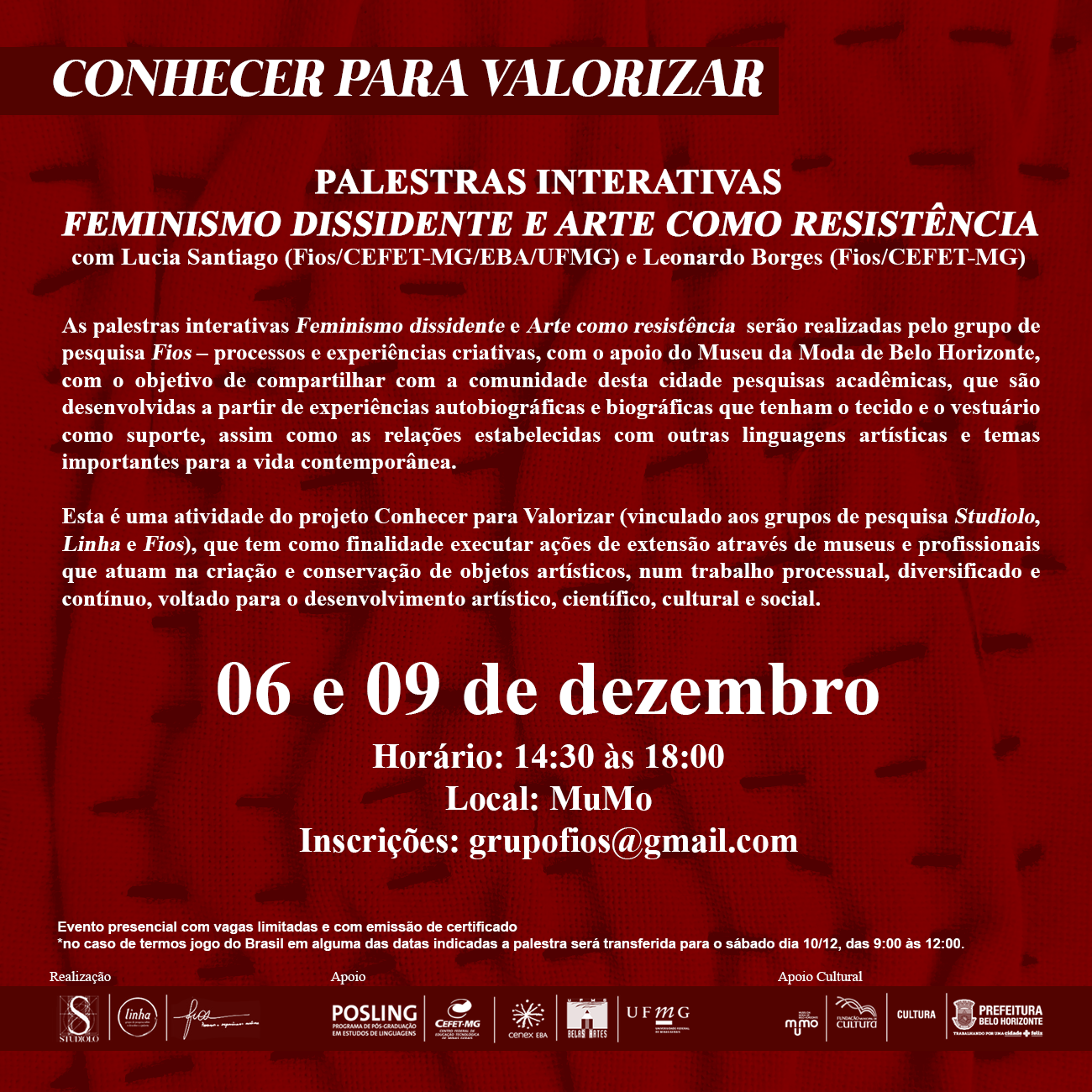 CONHECER PARA VALORIZAR : Palestras interativas – Feminismo Dissidente e Arte como Resistência Setor de Comunicação Sem categoria 6 de dezembro de 2022