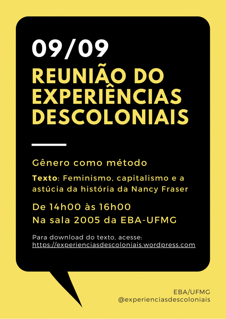 Reunião do grupo Experiências Descoloniais – 09 de setembro – 14h Setor de Comunicação Sem categoria 23 de agosto de 202224 de agosto de 2022