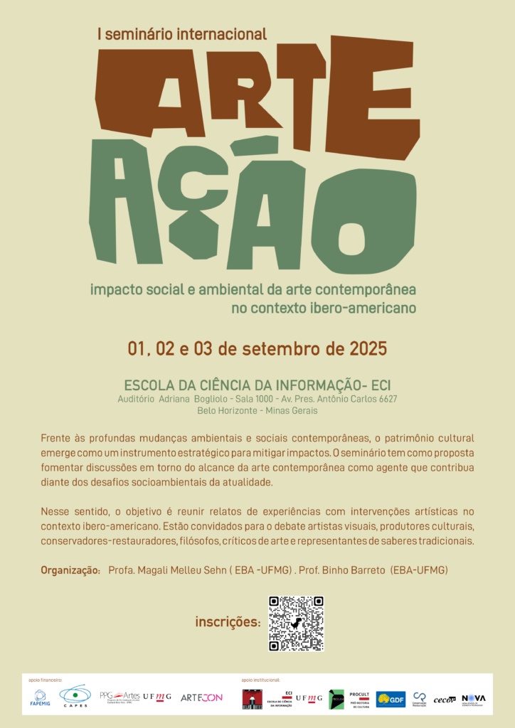 Seminário “Arte Ação” – 01 a 03 de setembro – Escola de Ciência da Informação 6 de agosto de 20256 de agosto de 2025 Clique na Imagem para acessar o programa